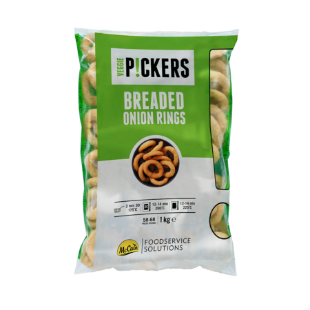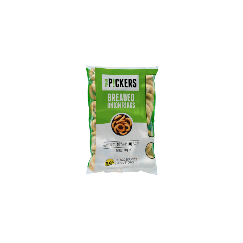 Onion rings, préparation à base d’oignons et de farine, en forme d’anneaux, enrobée avec de la chapelure, préfrite et surgelée 1kg McCain