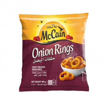 Onion rings, préparation à base d’oignons et de farine, en forme d’anneaux, enrobée avec de la chapelure, préfrite et surgelée 1kg McCain